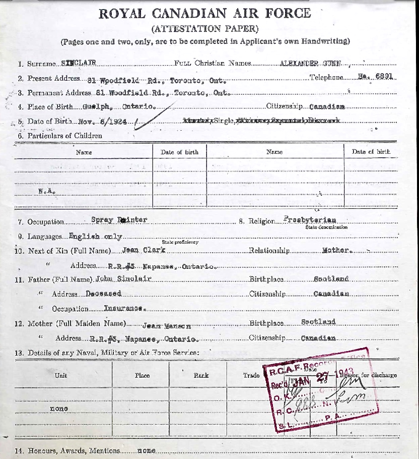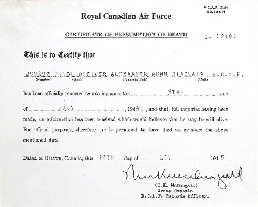 Digital gallery of Pilot Officer Alexander Gunn Sinclair