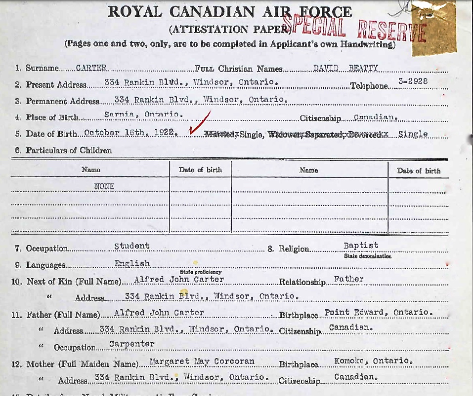 Son of Alfred John Carter, and of Margaret May Carter, of Windsor, Ontario.