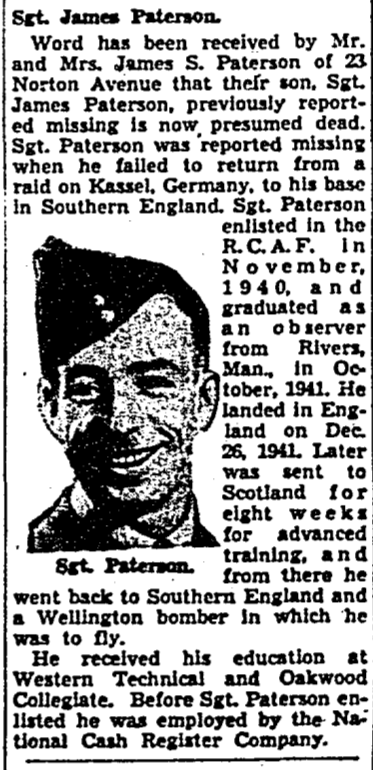 Page 105 of the Second World War Book of Remembrance.