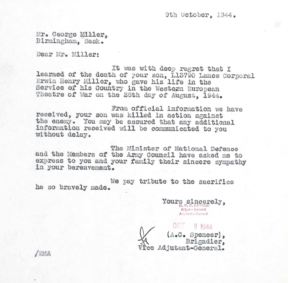 Son of George and Emilie Miller, of Birmingham, Saskatchewan. Brother of Esther, Walter, Rinald and Erna.