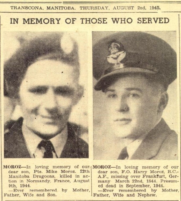 Brother of Flying Officer Hryhory Moroz, who died during service with the Royal Canadian Air Force.