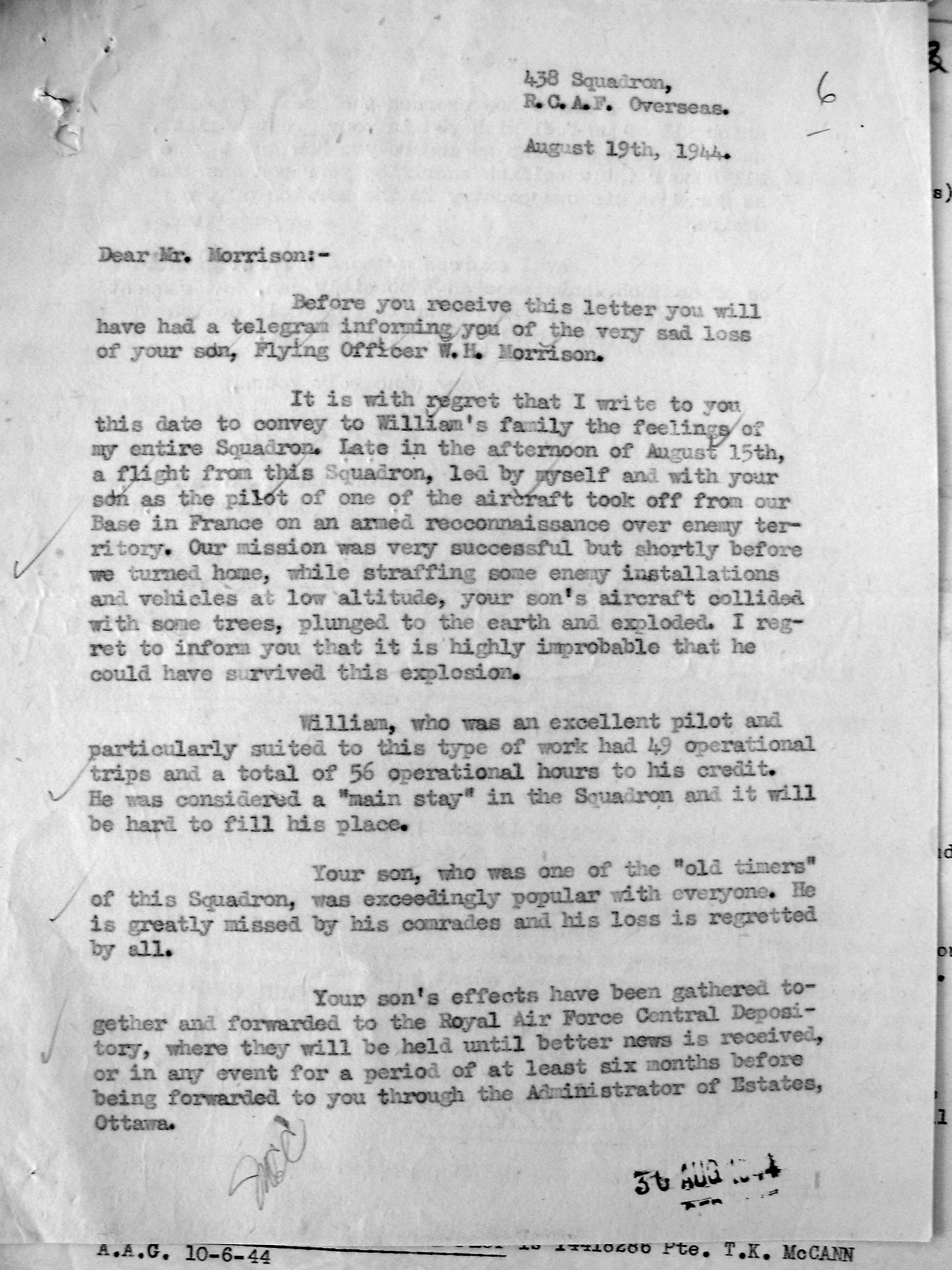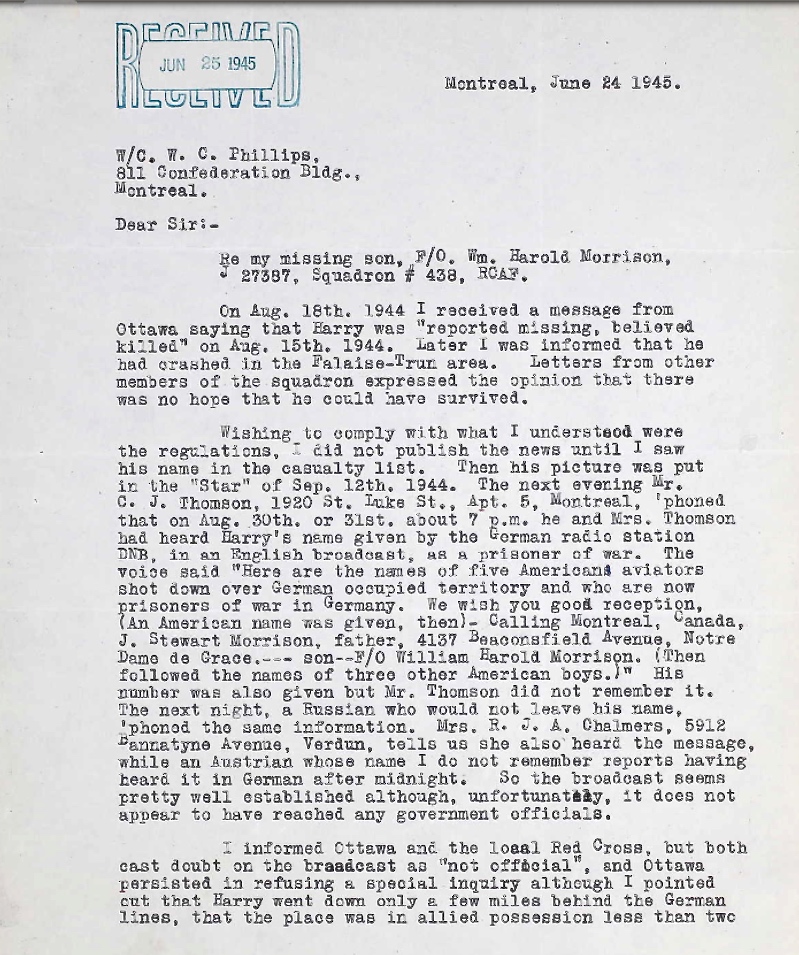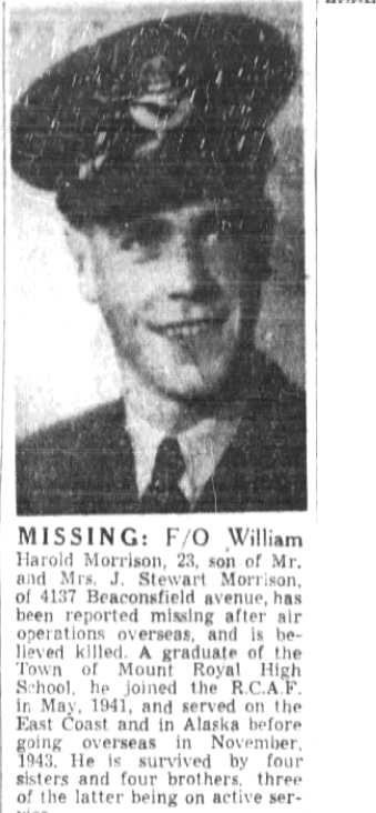 Son of John Stewart Morrison and Alma Mary Morrison, of Montreal, Province of Quebec.