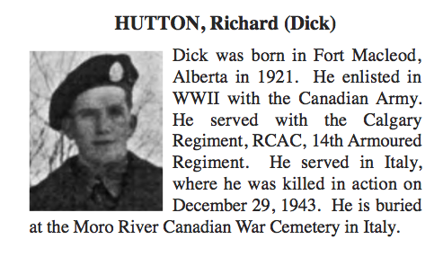 Son of David and Elizabeth Hutton of Macleod, Alberta.