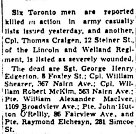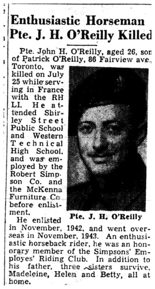 Son of Patrick J. and Williamina O'Reilly, of Toronto, Ontario.