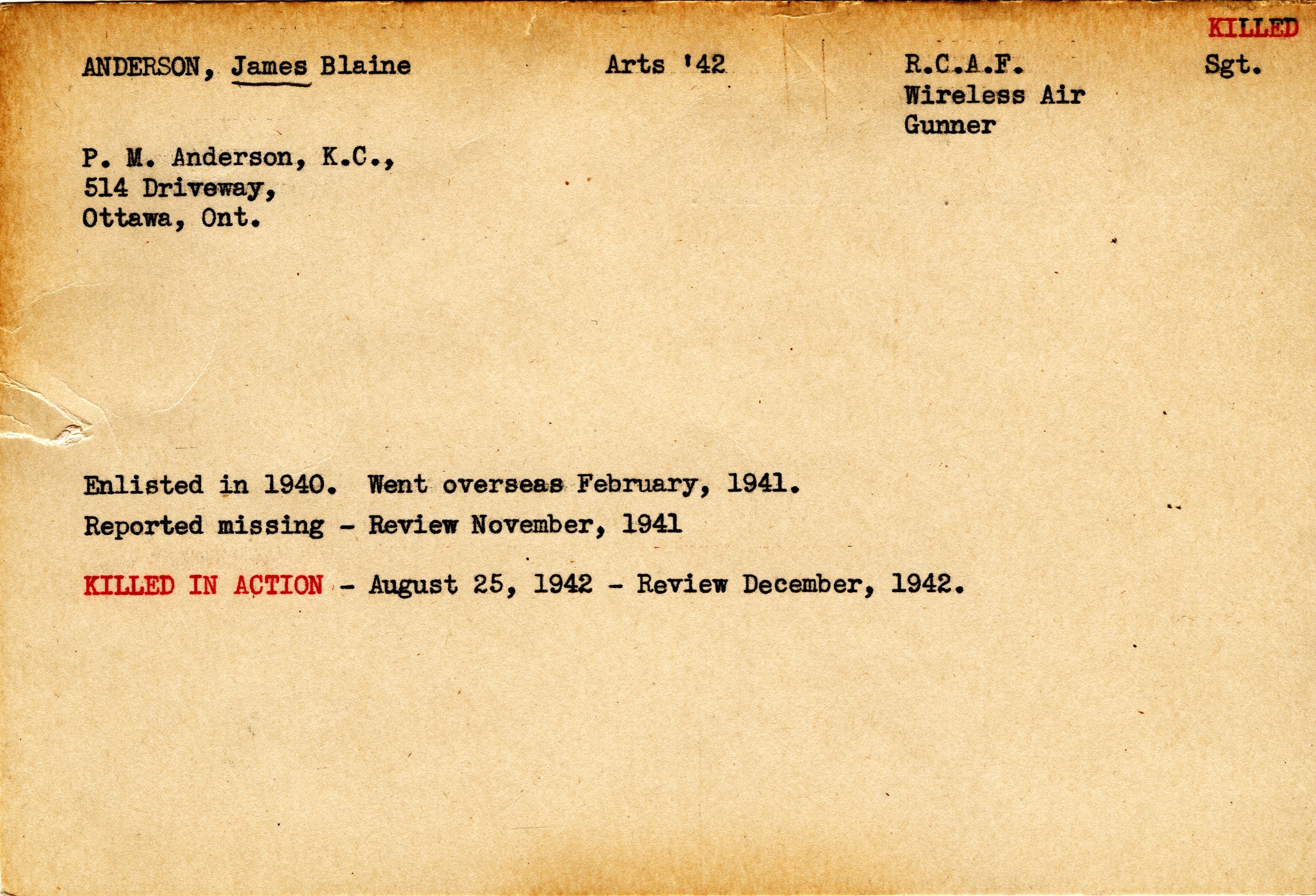 Digital gallery of Sergeant James Blain Anderson