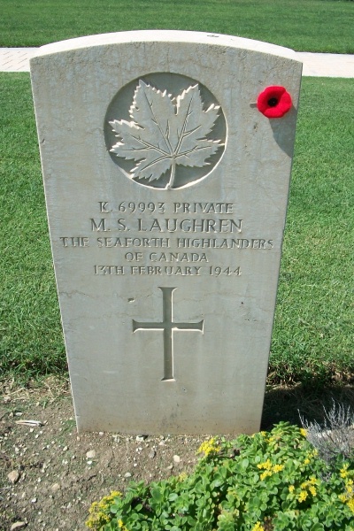 By the winter of 1943, the German armies in Italy were defending a line stretching from the Tyrrhenian Sea north of Naples, to the Adriatic Sea south of Ortona. The Allies prepared to break through this line to capture Rome. For its part, the 1st Canadian Infantry Division was to cross the Moro River and take Ortona. In January 1944 the Canadian Corps selected this site, intending that it would contain the graves of those who died during the Ortona battle and in the fighting in the weeks before and after it. Today, there are 1,615 graves in the cemetery, of which over 50 are unidentified and 1,375 are Canadian.