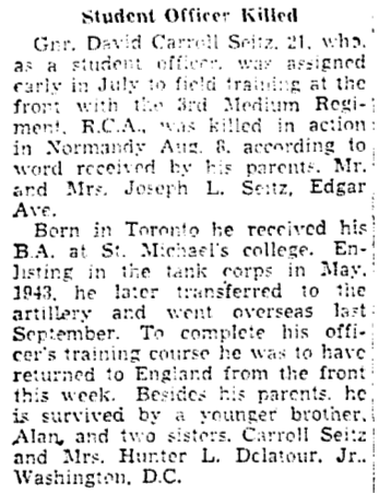 Son of Joseph Leo Seitz and Winonah Seitz, of Toronto, Ontario. B.A. (University of Toronto).