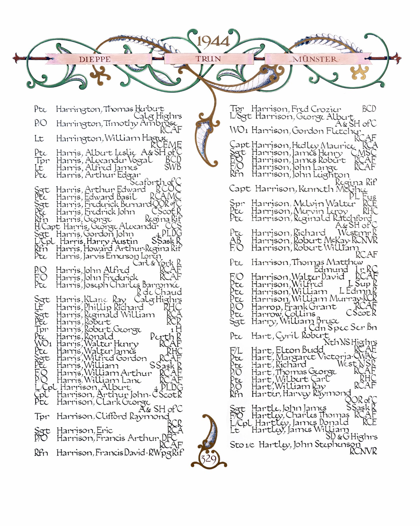 Page 329 of the Second World War Book of Remembrance.