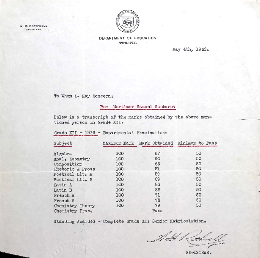 Son of Harry and Sophie Sucharov, of Winnipeg, Manitoba.
