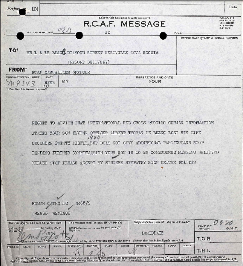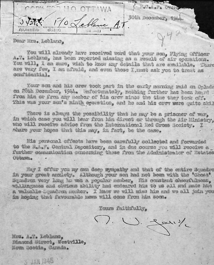 Digital gallery of Flying Officer Albert Thomas Le Blanc