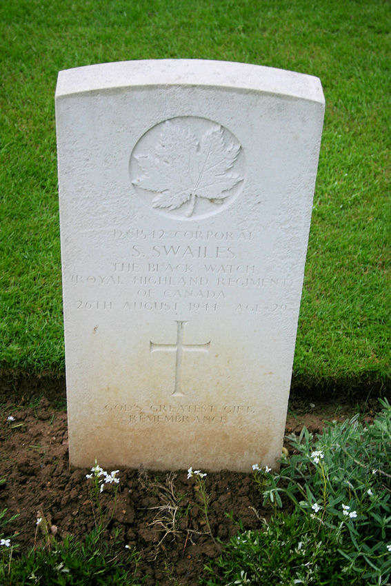 This cemetery lies on the west side of the main road from Caen to Falaise (route N158) and just north of the village of Cintheaux. Bretteville-sur-Laize is a village and commune in the department of the Calvados, some 16 kilometres south of Caen. The village of Bretteville lies 3 kilometres south-west of the Cemetery. Buried here are those who died during the later stages of the battle of Normandy, the capture of Caen and the thrust southwards (led initially by the 4th Canadian and 1st Polish Armoured Divisions), to close the Falaise Gap, and thus seal off the German divisions fighting desperately to escape being trapped west of the Seine. Almost every unit of Canadian 2nd Corps is represented in the Cemetery. There are about 3,000 allied forces casualties of the Second World War commemorated in this site.