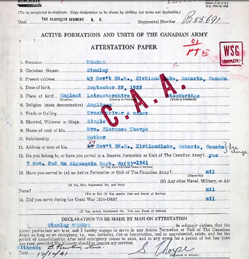 Son of John William and Florence Minnie Thorpe, of Kirkland Lake, Ontario.