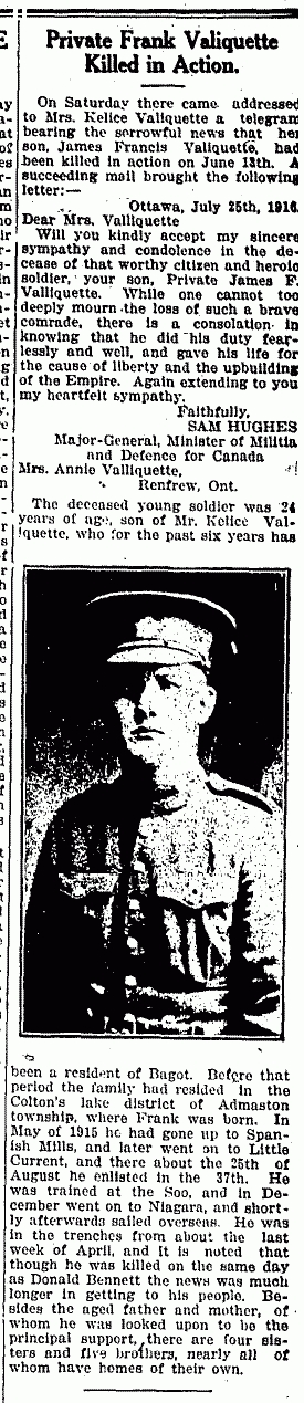 Son of Kelise and Annie Valliquette, of Renfrew, Ontario.