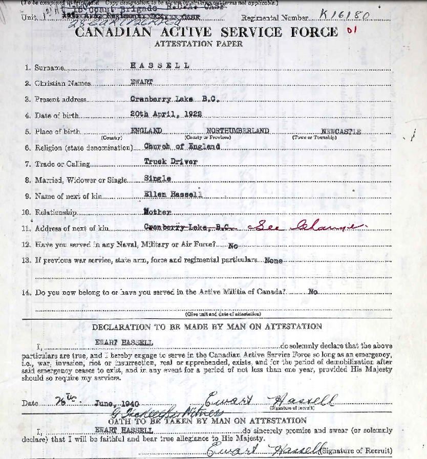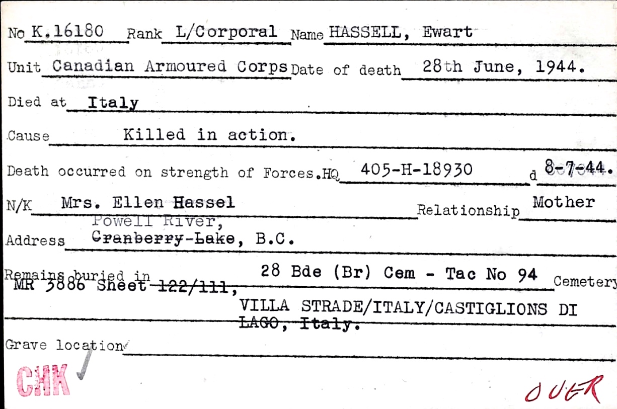 Son of Henry William and Ellen Hassell, of Powell River, British Columbia, Canada.