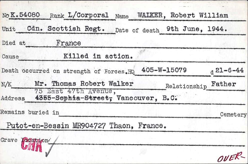 Son of Thomas Robert and Mary Walker, of Vancouver, British Columbia.