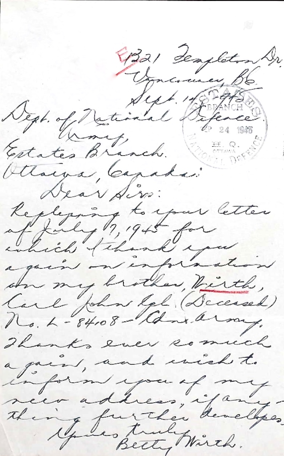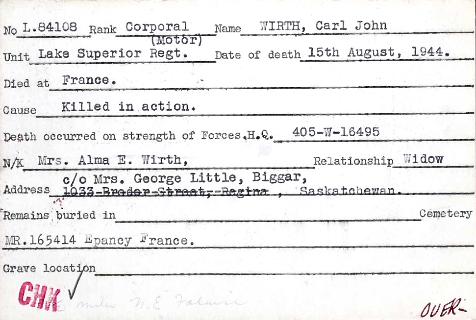 Son of Jacob and Eva Wirth; husband of Alma Eileen Wirth, of Regina, Saskatchewan.