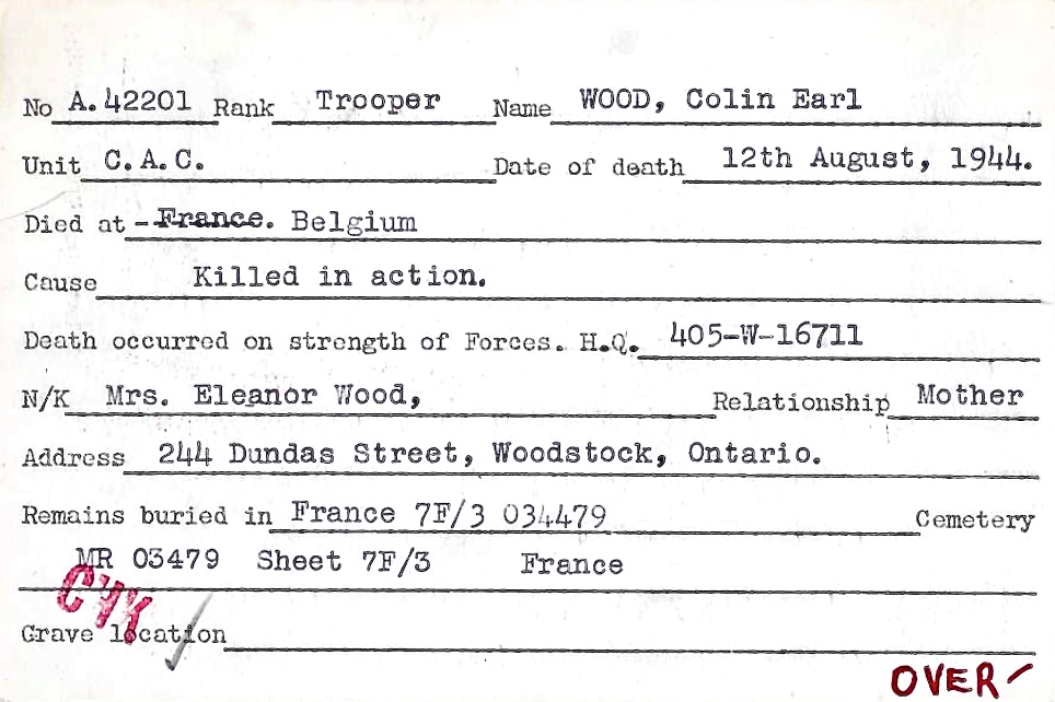 Son of Mr. and Mrs. S. R. Wood, of Woodstock, Ontario.