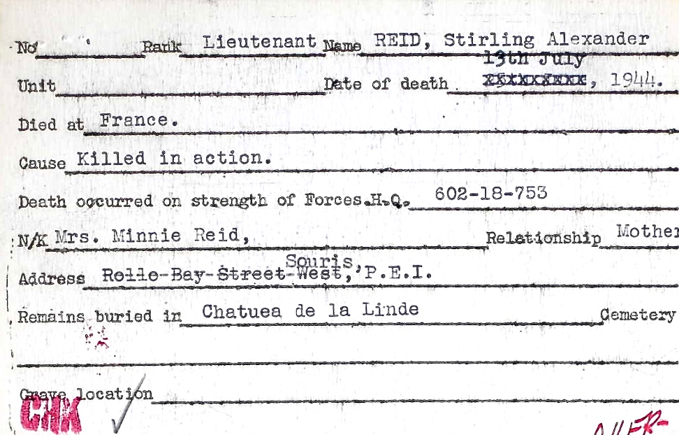 Son of Edwin and Minnie F. Reid, of Souris, Prince Edward Island, Canada.