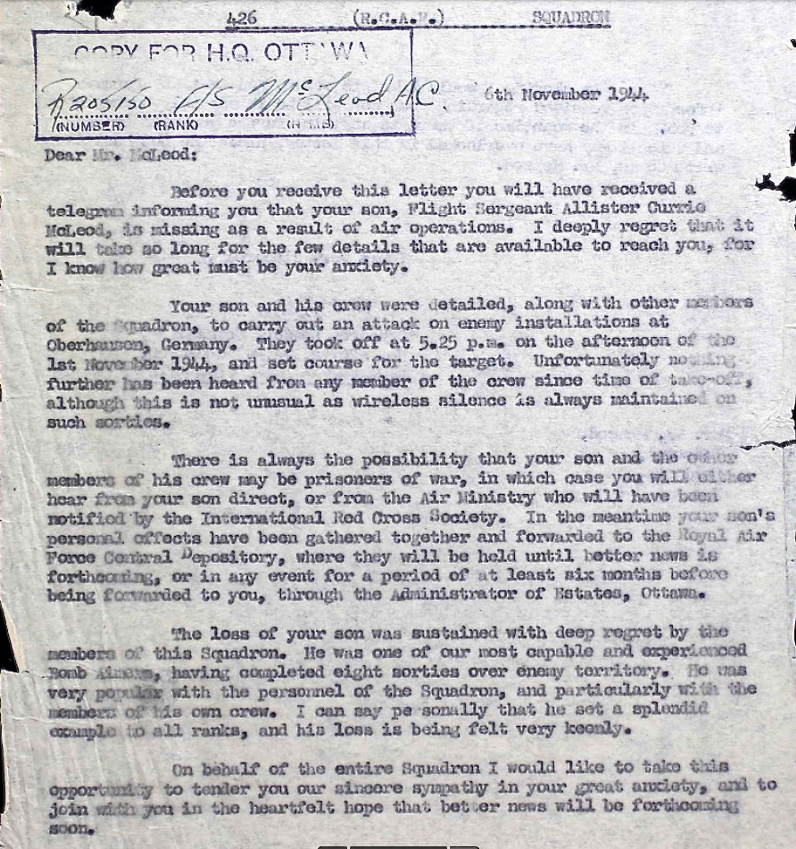 Digital gallery of Pilot Officer Allister Currie McLeod