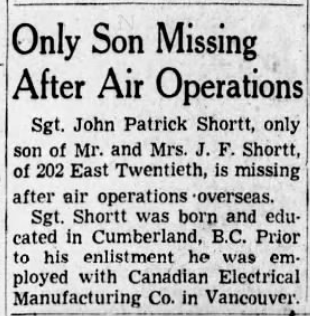 Son of John Falkner Shortt and Margaret Frances Shortt, of Vancouver, British Columbia, Canada.