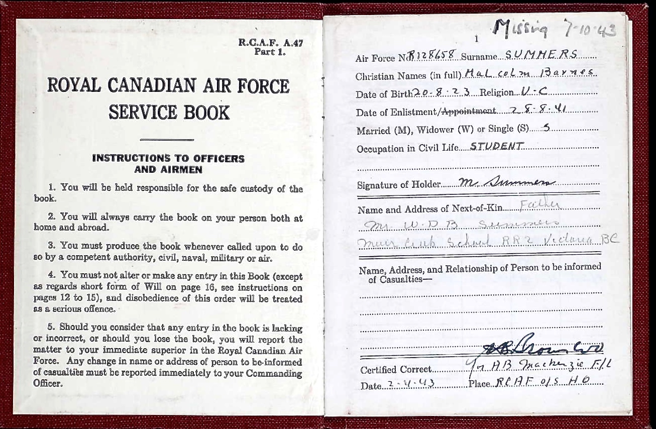 Digital gallery of Pilot Officer Malcolm Barnes Summers