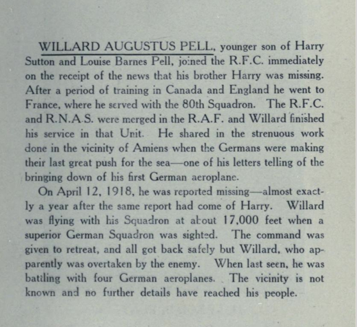 Brother of Second Lieutenant Harry Saxon Pell, who died while serving with the Royal Flying Corps.