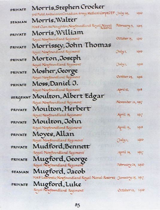 Page 85 of the Newfoundland Book of Remembrance.