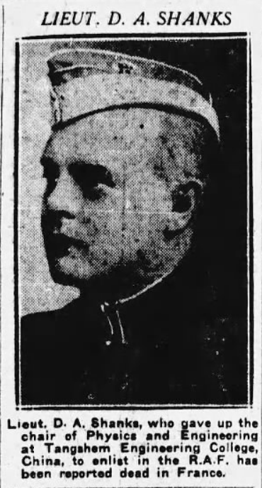 Son of James C. Shanks, M.D., and Elizabeth A. Shanks, of Hoowick, Quebec.