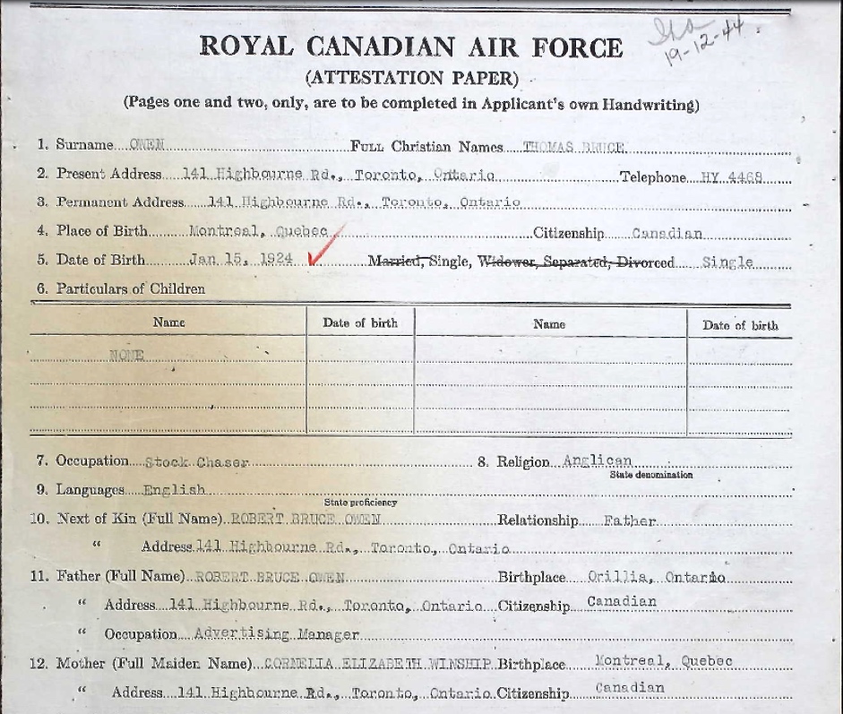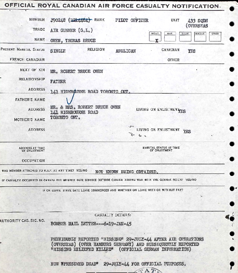 Page 409 of the Second World War Book of Remembrance.