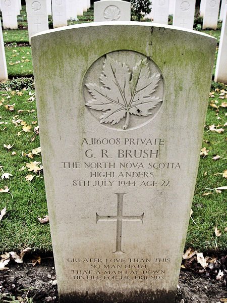 It was on the coast just to the north that the 3rd Canadian Division landed on 6th June 1944; on that day, 335 officers and men of that division were killed in action or died of wounds. In this cemetery are the graves of Canadians who gave their lives in the landings in Normandy and in the earlier stages of the subsequent campaign. Canadians who died during the final stages of the fighting in Normandy are buried in Bretteville-sur-Laize Canadian War Cemetery.