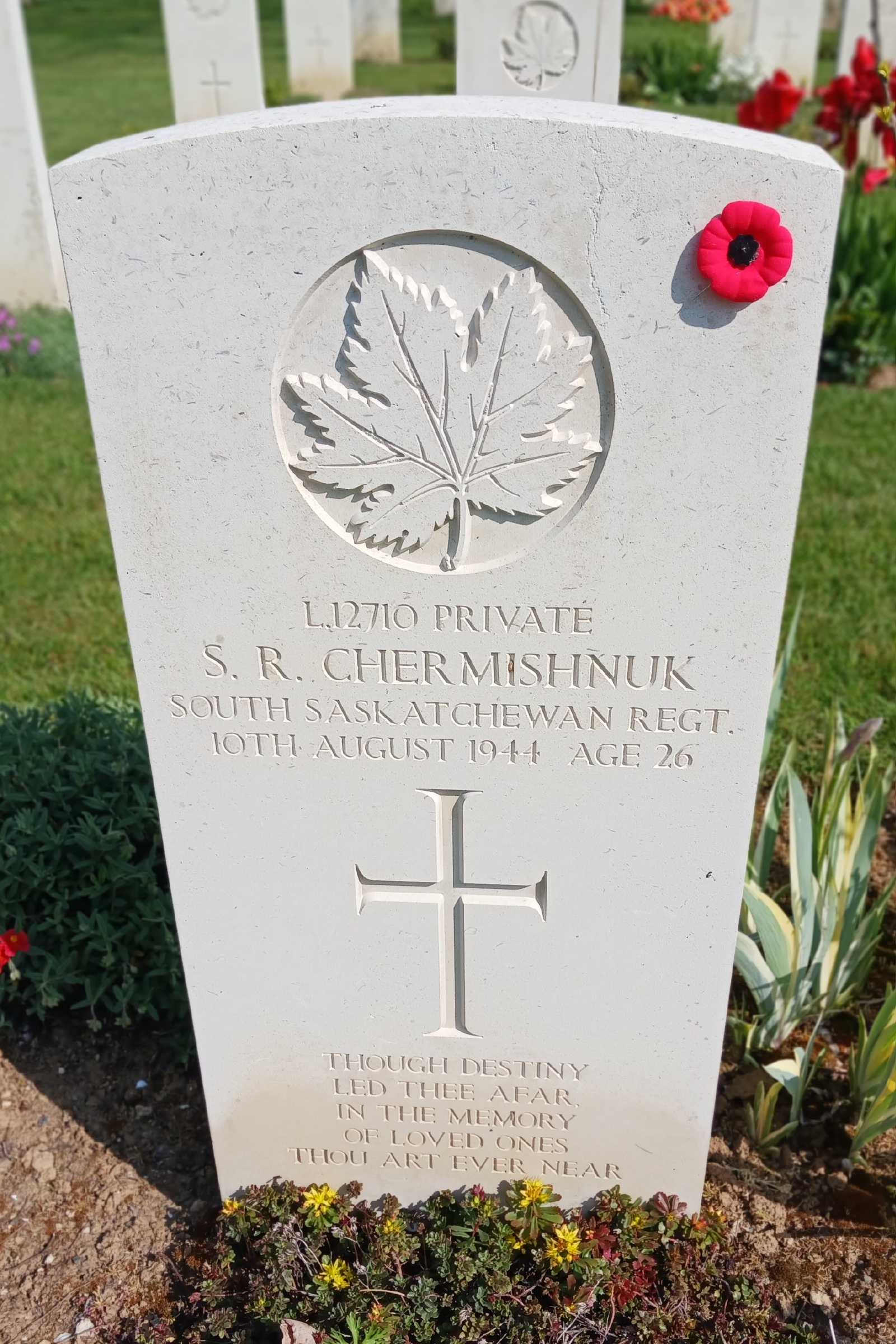 It was on the coast just to the north that the 3rd Canadian Division landed on 6th June 1944; on that day, 335 officers and men of that division were killed in action or died of wounds. In this cemetery are the graves of Canadians who gave their lives in the landings in Normandy and in the earlier stages of the subsequent campaign. Canadians who died during the final stages of the fighting in Normandy are buried in Bretteville-sur-Laize Canadian War Cemetery.