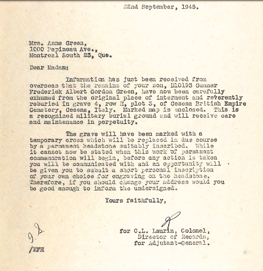 Son of Frederick Gordon Green and Annie Green, of Montreal, Quebec.