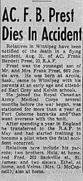 Son of Frank Bismark Prest and Elsie Victoria Prest, of Winnipeg, Manitoba, Canada.
