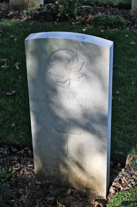 It was on the coast just to the north that the 3rd Canadian Division landed on 6th June 1944; on that day, 335 officers and men of that division were killed in action or died of wounds. In this cemetery are the graves of Canadians who gave their lives in the landings in Normandy and in the earlier stages of the subsequent campaign. Canadians who died during the final stages of the fighting in Normandy are buried in Bretteville-sur-Laize Canadian War Cemetery.