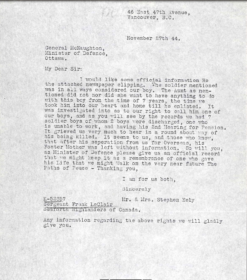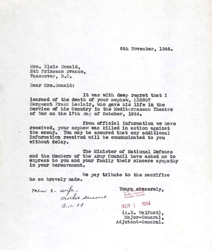 Digital gallery of Sergeant Frank Le Clair