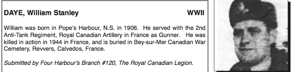 Digital gallery of Gunner William Stanley Daye