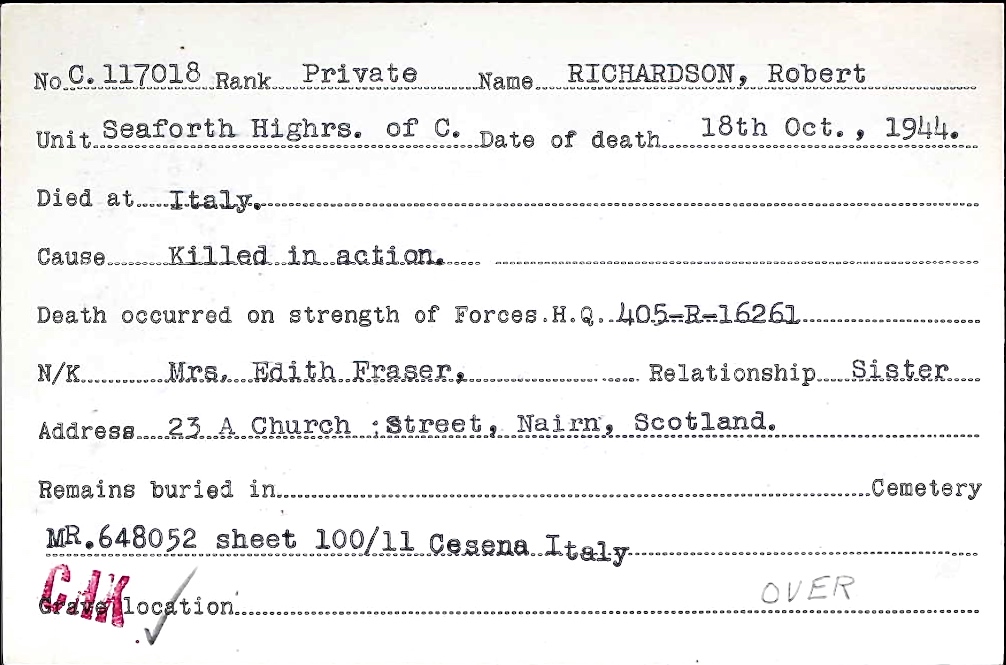 The CESENA WAR CEMETERY is permanently open and may be visited outside the working hours of the local gardening staff, but will be unmanned.