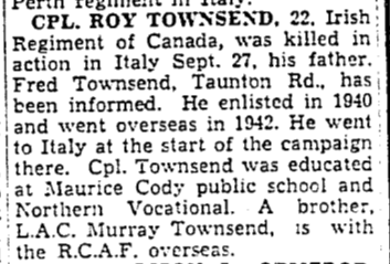 Unit/Regiment: Irish Regiment of Canada, R.C.I.C.