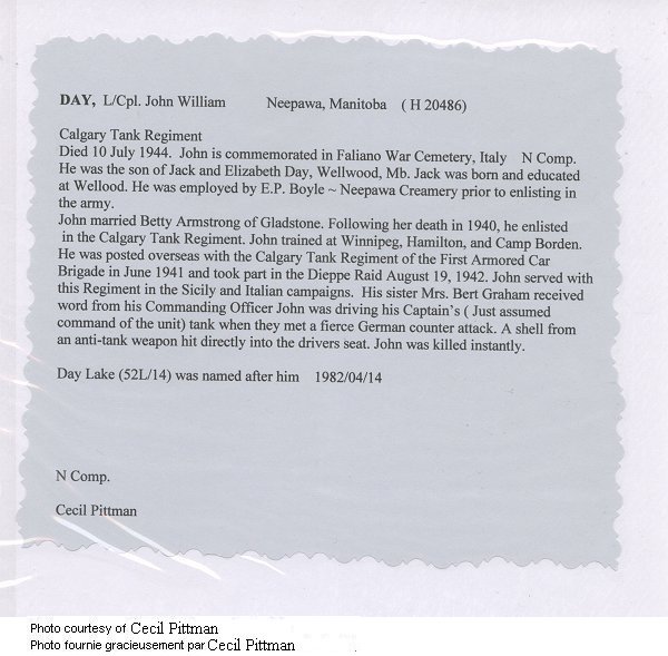 Son of Arthur John and Elizabeth Day, of Neepawa, Manitoba.