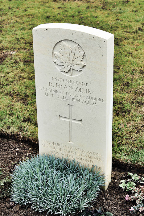 It was on the coast just to the north that the 3rd Canadian Division landed on 6th June 1944; on that day, 335 officers and men of that division were killed in action or died of wounds. In this cemetery are the graves of Canadians who gave their lives in the landings in Normandy and in the earlier stages of the subsequent campaign. Canadians who died during the final stages of the fighting in Normandy are buried in Bretteville-sur-Laize Canadian War Cemetery.