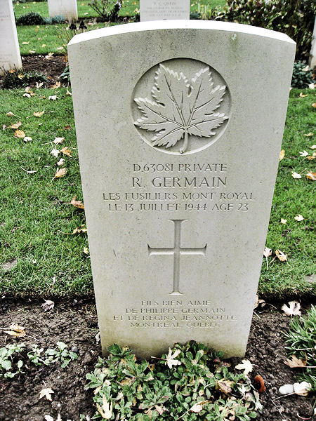 It was on the coast just to the north that the 3rd Canadian Division landed on 6th June 1944; on that day, 335 officers and men of that division were killed in action or died of wounds. In this cemetery are the graves of Canadians who gave their lives in the landings in Normandy and in the earlier stages of the subsequent campaign. Canadians who died during the final stages of the fighting in Normandy are buried in Bretteville-sur-Laize Canadian War Cemetery.