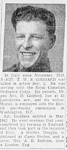 Son of Mrs. H. Goddard, of Winnipeg, Manitoba. Husband of Muriel Frances Goddard of Winnipeg.