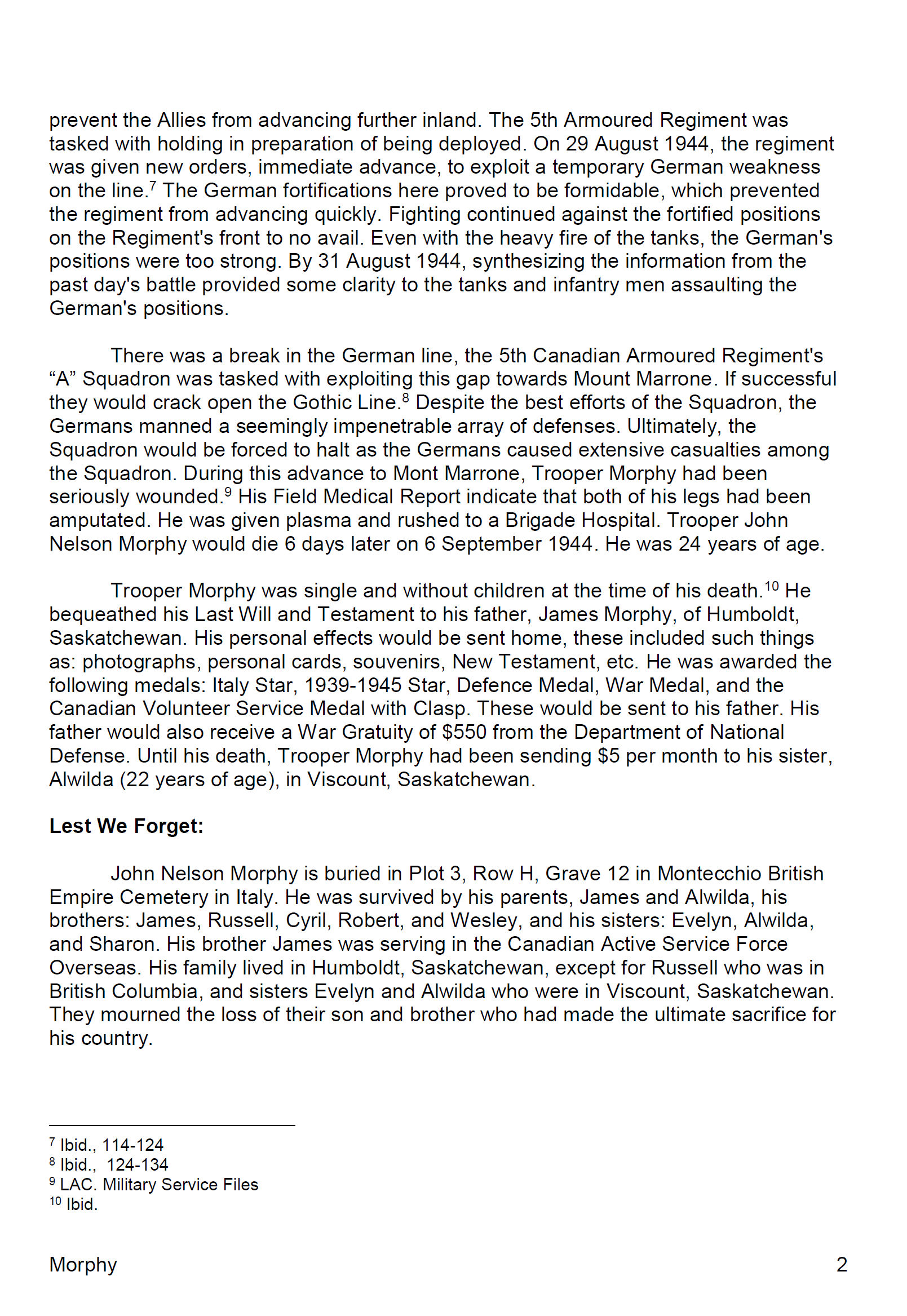 Son of James Alfred and Alwilda Tomindia Morphy, of Humboldt, Saskatchewan.