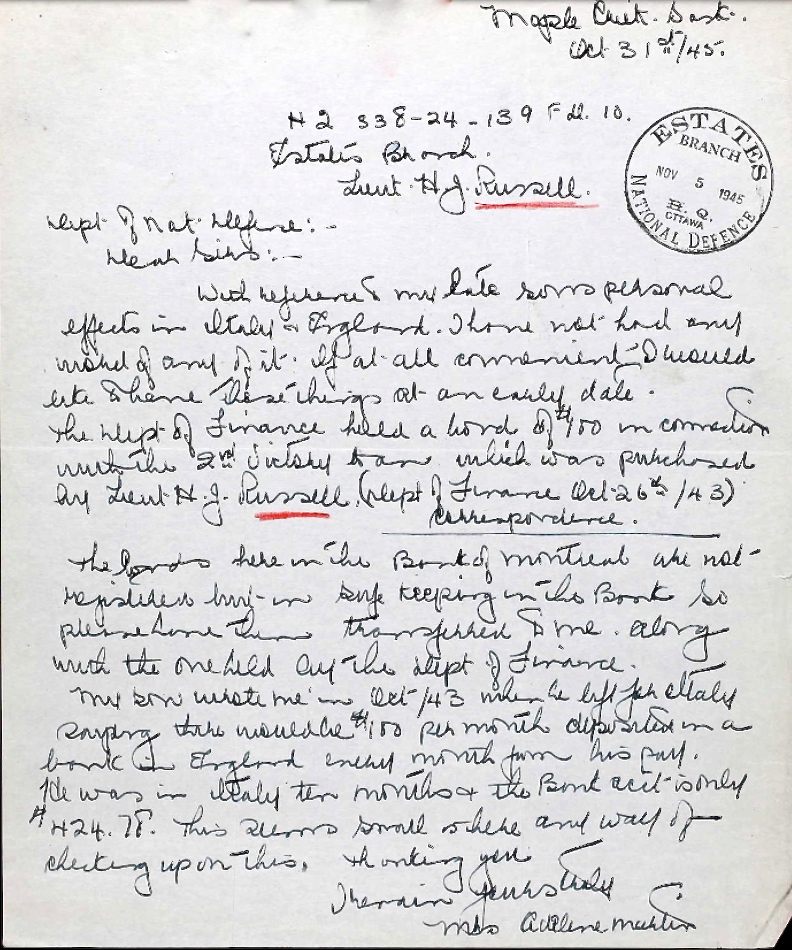 Son of Frank and Adeline F. Russell, of Maple Creek, Saskatchewan, Canada.