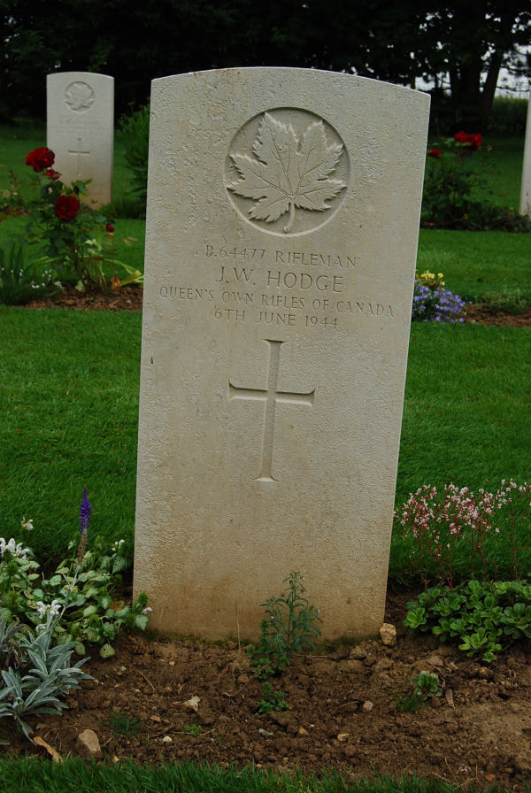 It was on the coast just to the north that the 3rd Canadian Division landed on 6th June 1944; on that day, 335 officers and men of that division were killed in action or died of wounds. In this cemetery are the graves of Canadians who gave their lives in the landings in Normandy and in the earlier stages of the subsequent campaign. Canadians who died during the final stages of the fighting in Normandy are buried in Bretteville-sur-Laize Canadian War Cemetery.