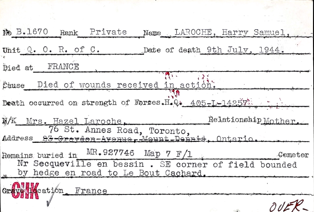 Unit/Regiment: Queen's Own Rifles of Canada, R.C.I.C.