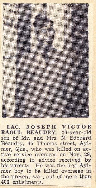 Son of N. Edward and Alida Beaudry, of Aylmer, Province of Quebec, Canada.