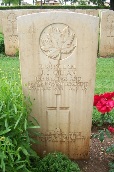 If approaching the CASSINO WAR CEMETERY by road, follow the Highway A2 from Rome to Naples and leave it at the Cassino exit. After passing the pay booths, follow the sign for Cassino. At the traffic lights, after a block of flats, turn right towards the locality of S. Angelo and the CWGC signs will then be seen.