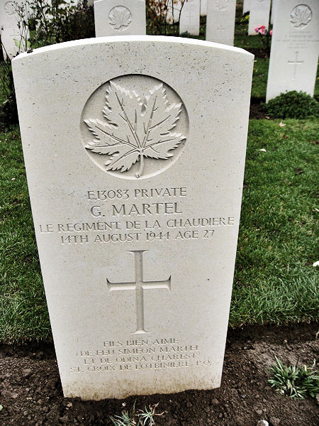 It was on the coast just to the north that the 3rd Canadian Division landed on 6th June 1944; on that day, 335 officers and men of that division were killed in action or died of wounds. In this cemetery are the graves of Canadians who gave their lives in the landings in Normandy and in the earlier stages of the subsequent campaign. Canadians who died during the final stages of the fighting in Normandy are buried in Bretteville-sur-Laize Canadian War Cemetery.