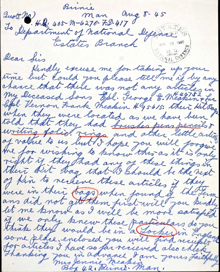 Brother of Lance Corporal Frank Vernon Meakin, who died while serving with the Royal Winnipeg Rifles Regiment.